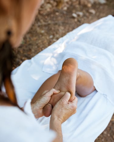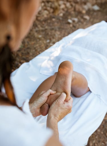 It is the application of appropriate pressure to specific points and areas on the feet that correspond to different body organs and systems. It brings balance to specific organs, improves the health of your body and brings a general state of wellbeing.